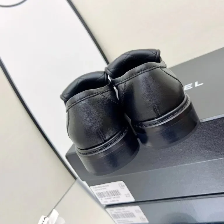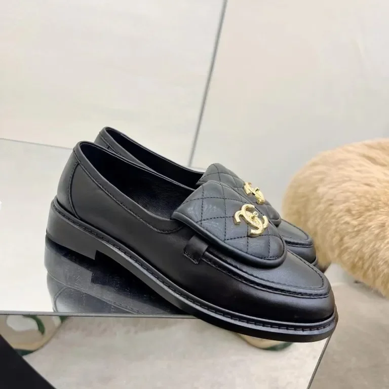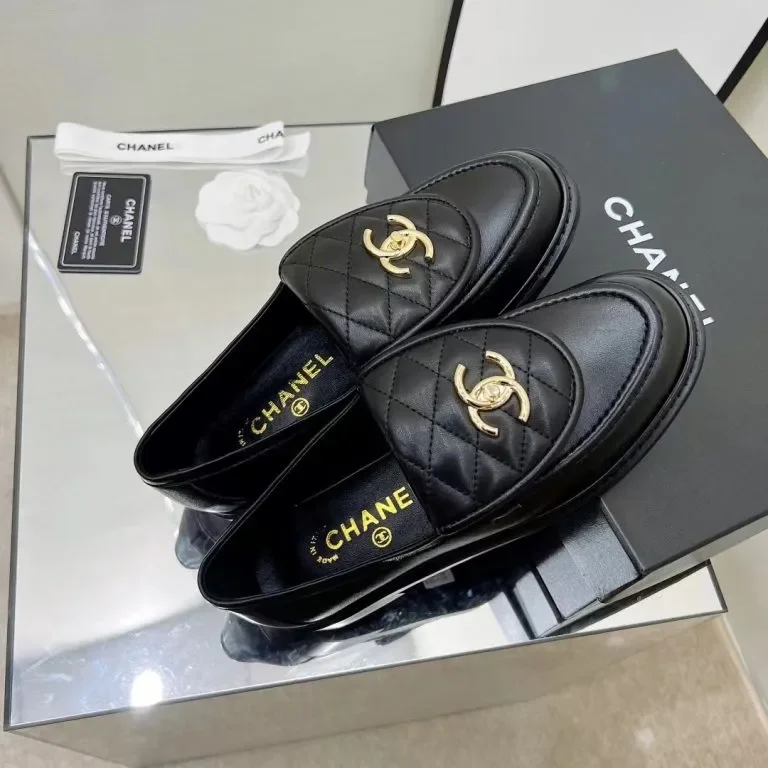 Refined and effortlessly chic, these black quilted leather loafers showcase timeless luxury craftsmanship with a polished, modern edge. Designed with a softly padded quilted upper, they feature the iconic gold-tone interlocking CC logo centered on the vamp for an instantly recognizable finish.