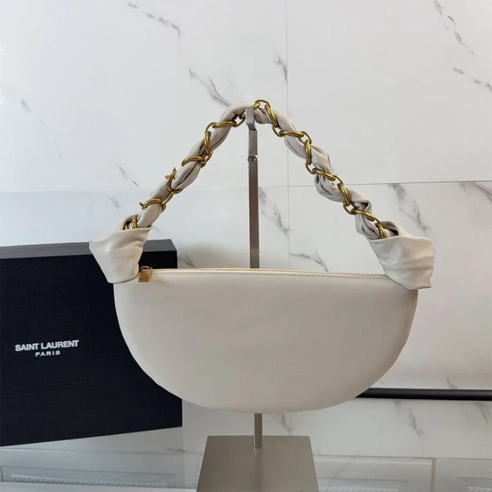 The YSL Amalia Mini Hobo in Lambskin stands apart for its refined simplicity and luxurious materials. The soft lambskin leather enhances the bag’s elegant curves while maintaining a modern, effortless look.